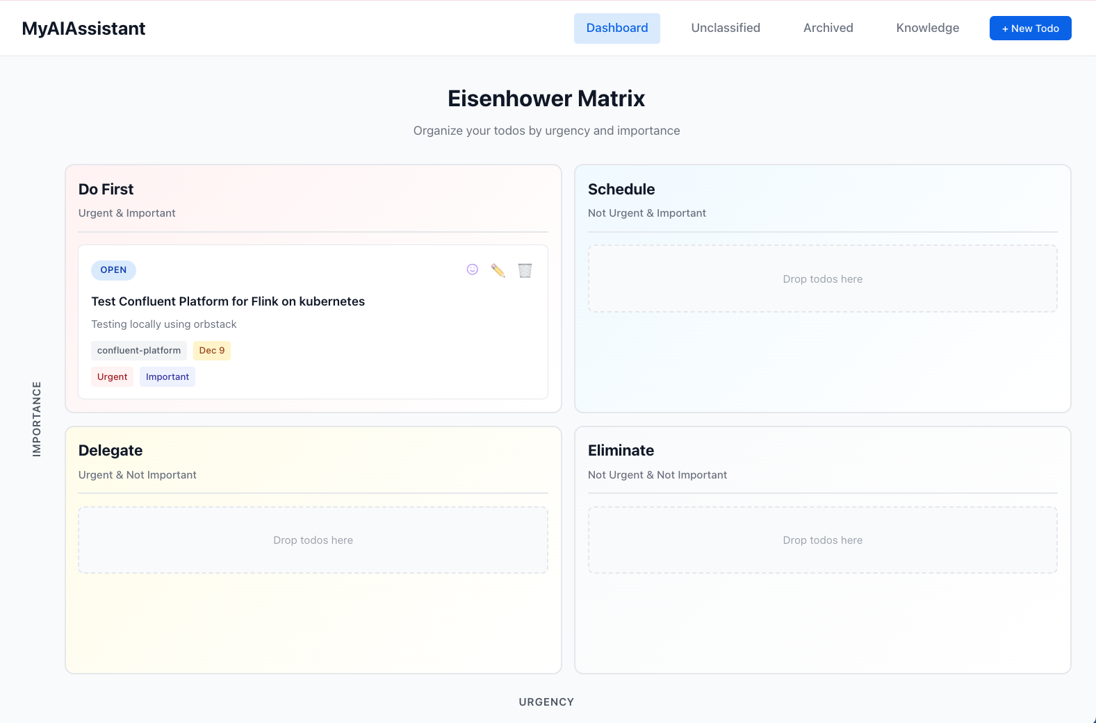 | Kanban-style Todo Management | Completed | Todos categorized by Importance/Urgency (Eisenhower Matrix) |